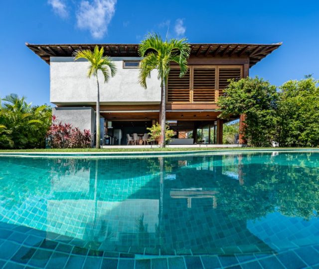 Casa de luxo para aluguel à 100 m da praia na Praia do Forte está situada no município de Mata de São João na Bahia a 80 quilômetros do aeroporto internacional de Salvador.